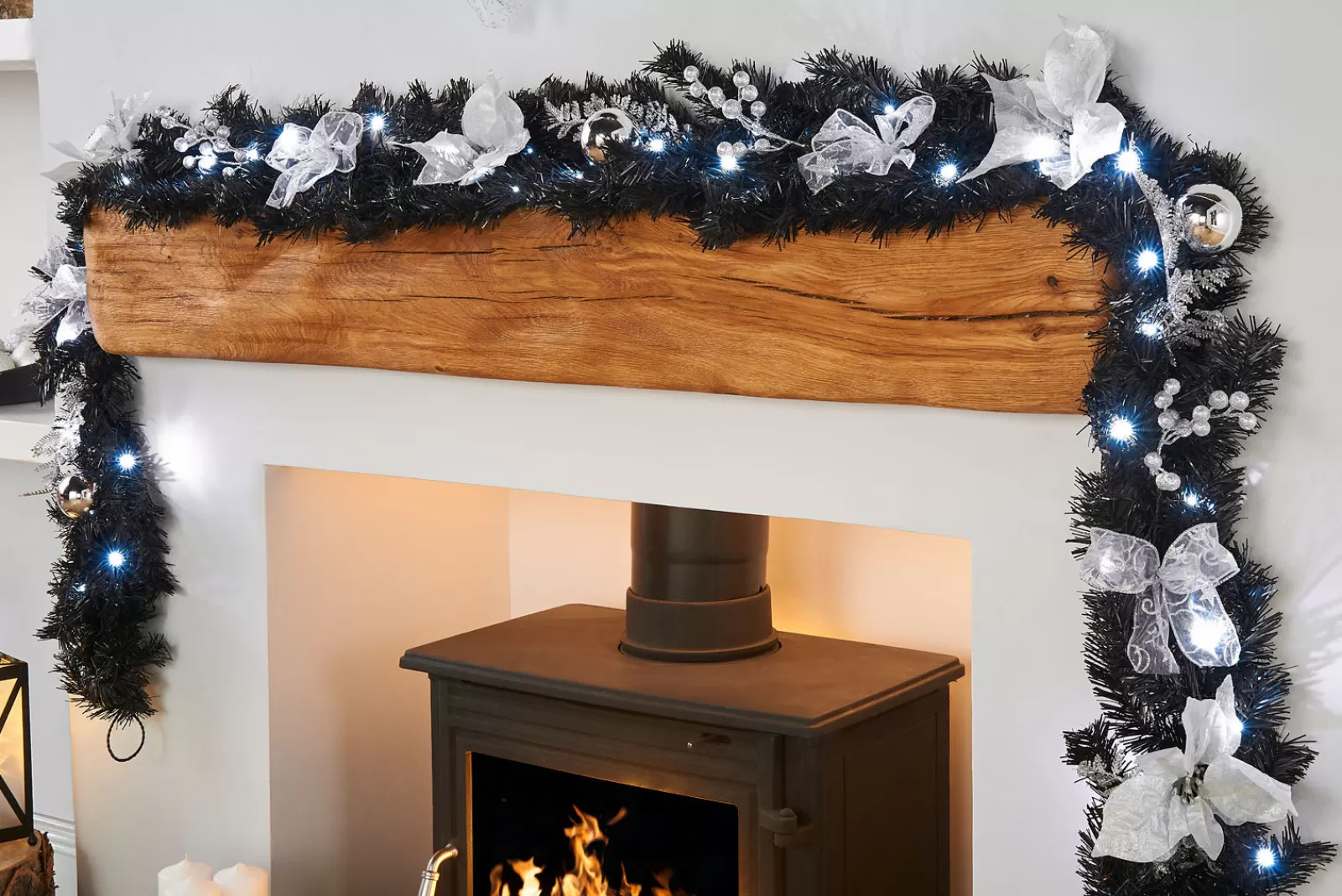 WeRChristmas Decorated Garlands | Pre Lit Garlands^Pre-Lit Decorated Garland, Black/Silver, 9 Ft