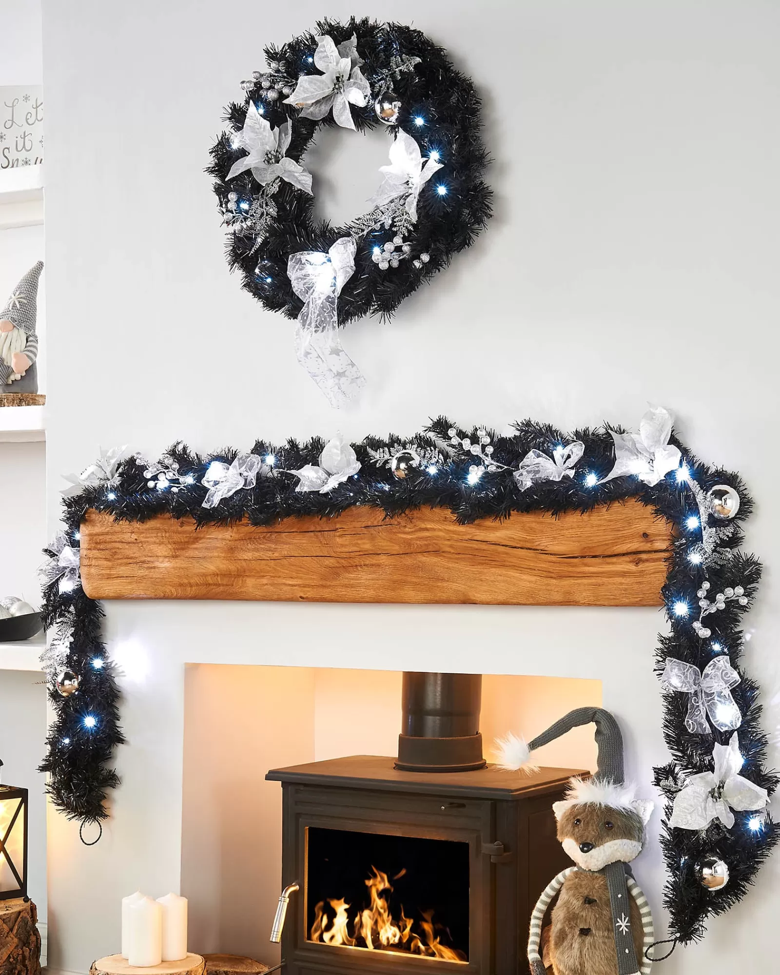 WeRChristmas Decorated Wreaths | Pre Lit Wreaths^Pre-Lit Decorated Wreath, Black/Silver, 60 Cm