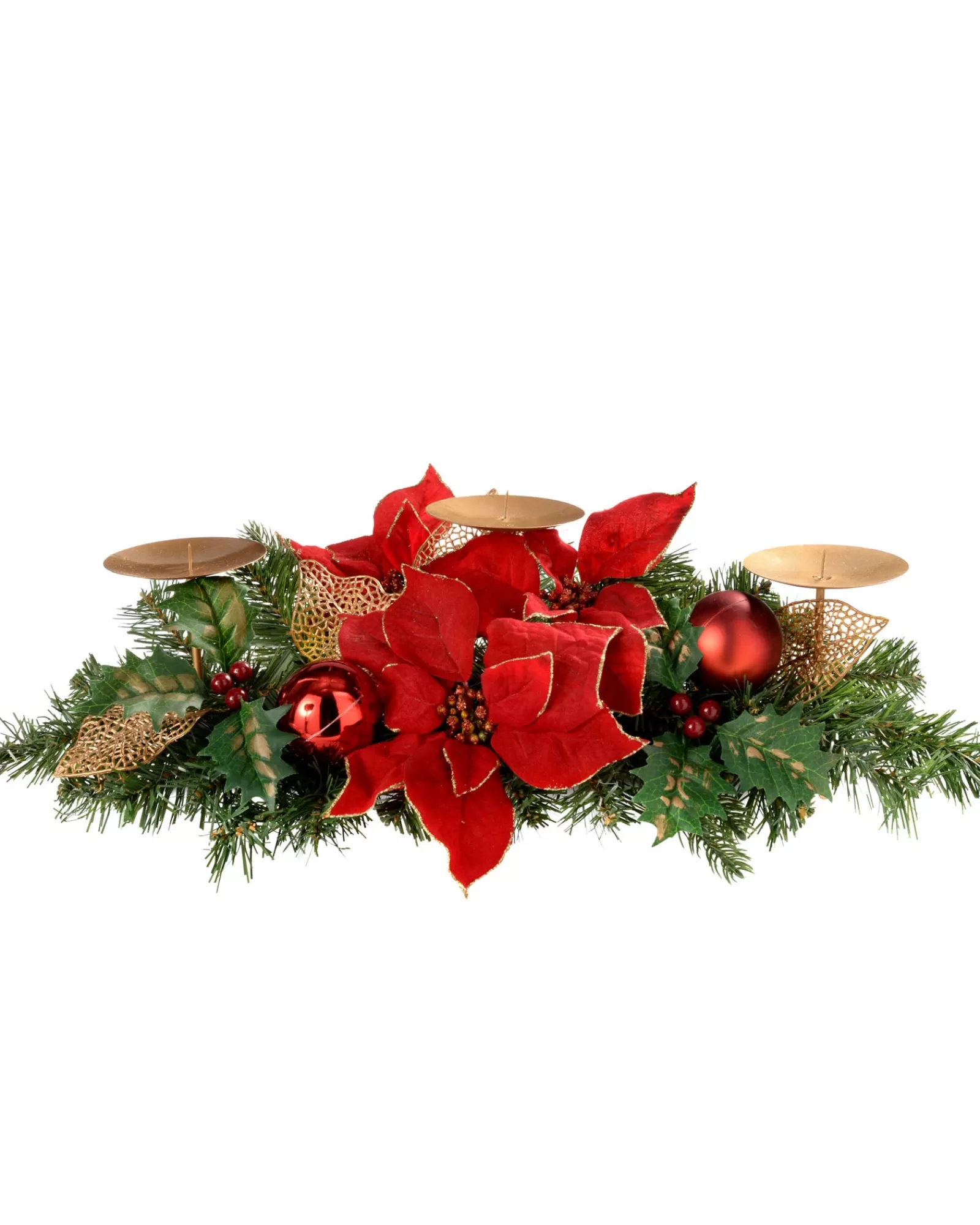 WeRChristmas Candle Holder Garlands | Decorated Garlands^Decorated Table Centre Piece Candle Holder – Red/Gold, 3 Pillar